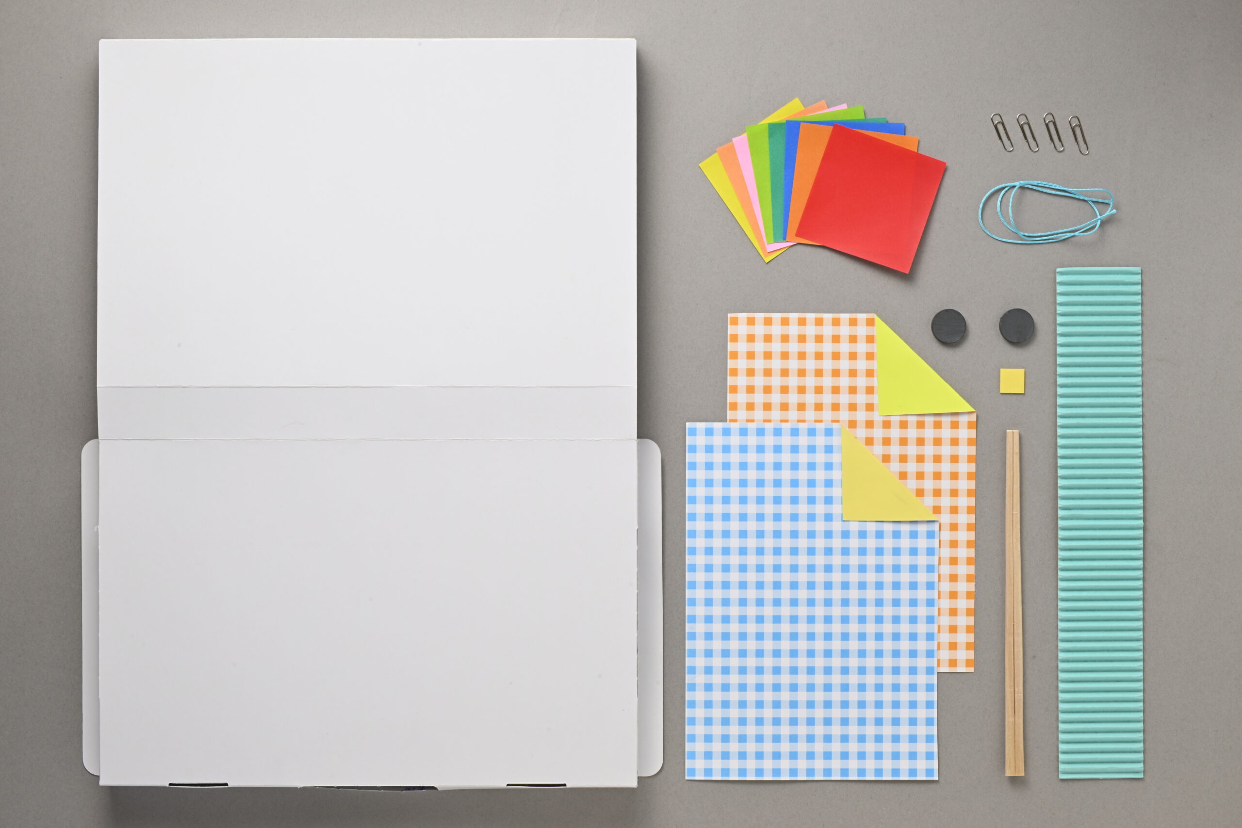 楽しく飾り付けられる片面波だんボールとチェック柄造形紙入り